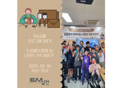 EM실천은 참여자 모든 이의 '희망'을 지지하며, 권리와 참여의 주체로써 살아갈 수 있도록 개인 · 조직 · 지역사회의 역량강화를 실천합니다.