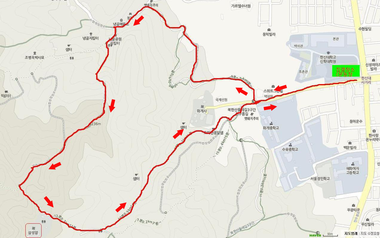 3. 집결장소 한신대학교 신학대학원 운동장(강북구 수유동 498-16)