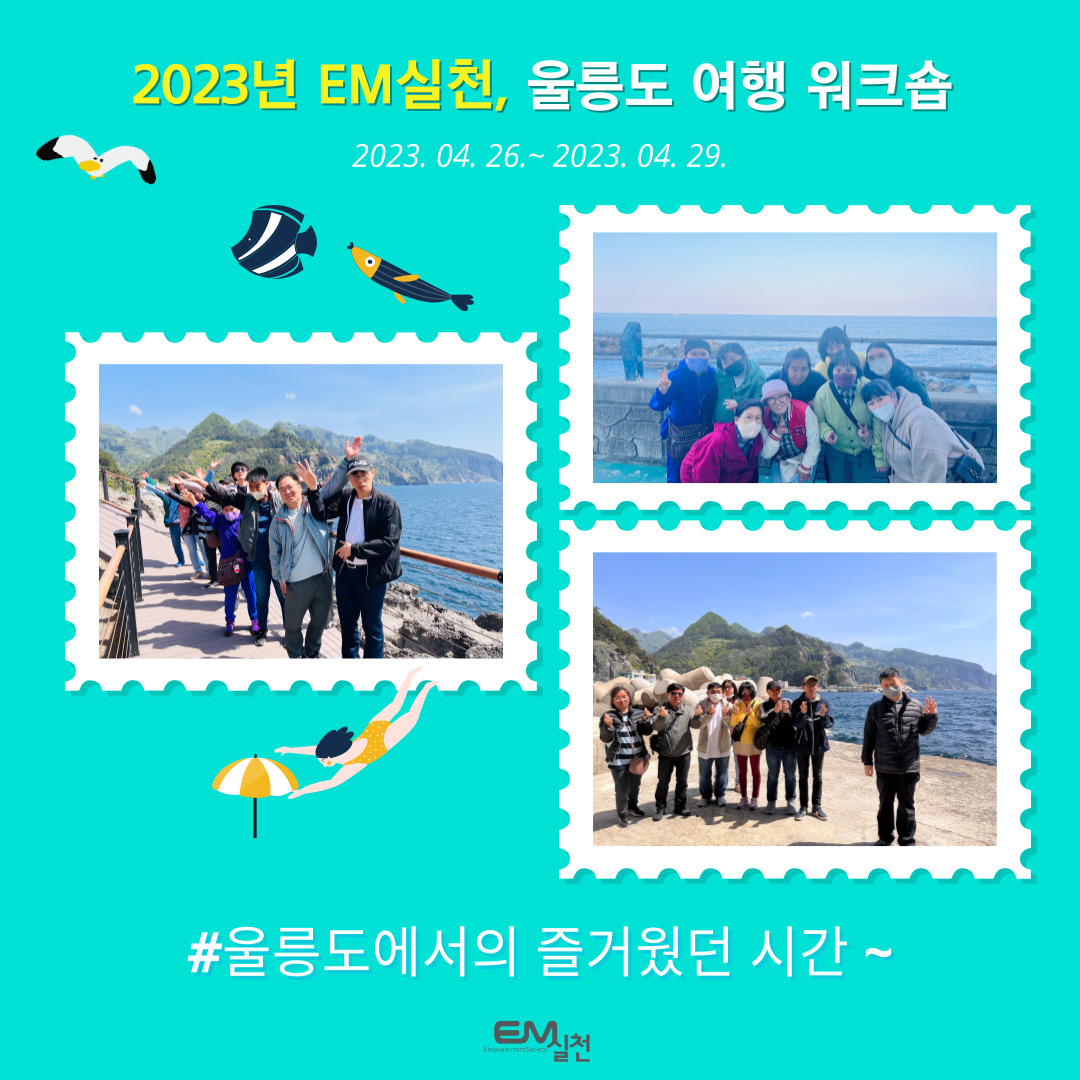 이번에 EM실천에서 2023년 워크숍이라는 기회를 통해 4월 26일 부터 4월 29일 까지 3박 4일간 울릉도 · 독도 워크숍을 다녀왔습니다!~