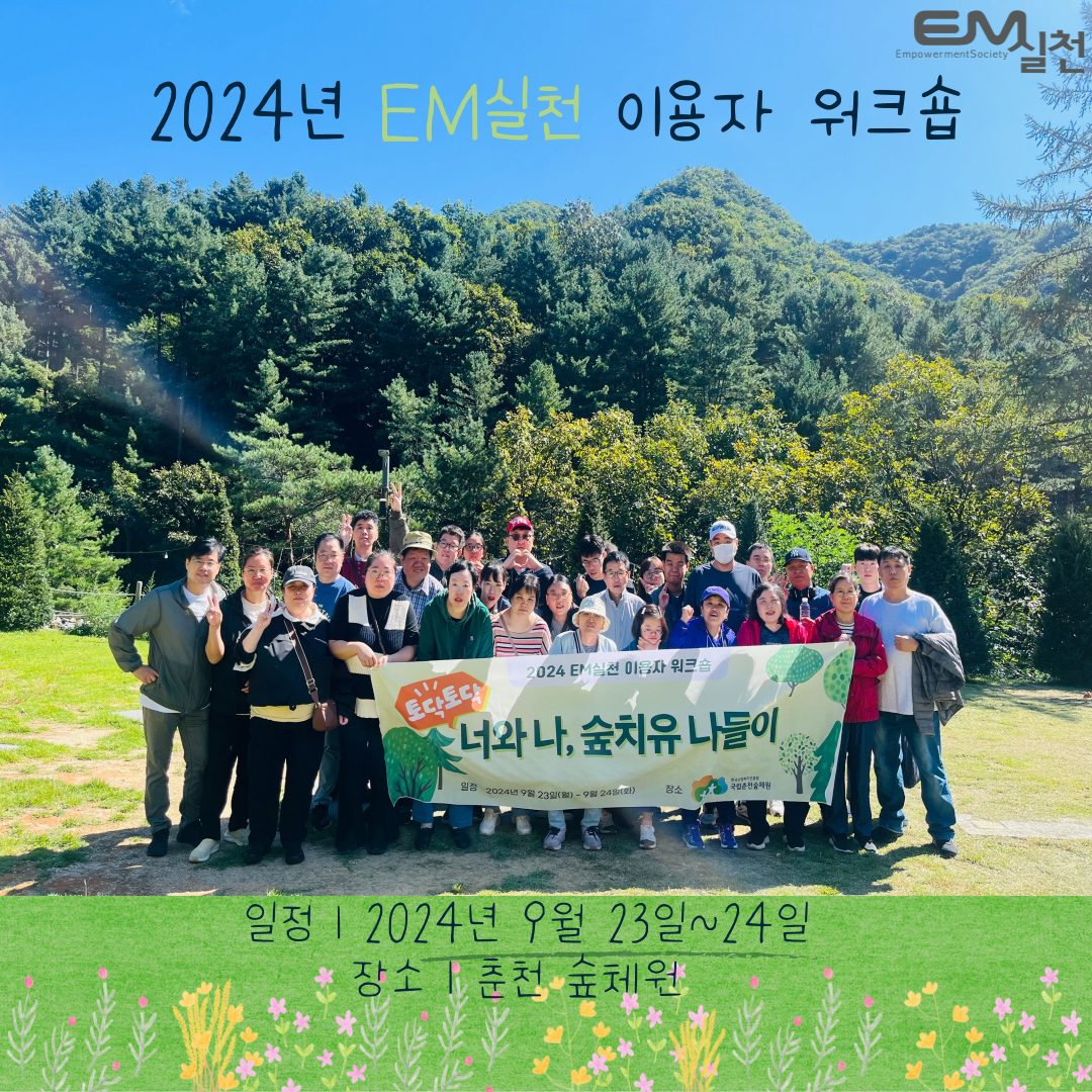 EM실천에서는 이용자 워크숍으로 춘천 숲체원에 방문하여 도시의 바쁜 일상에서 벗어나 자연 속에서 힐링하는 시간을 가졌습니다~