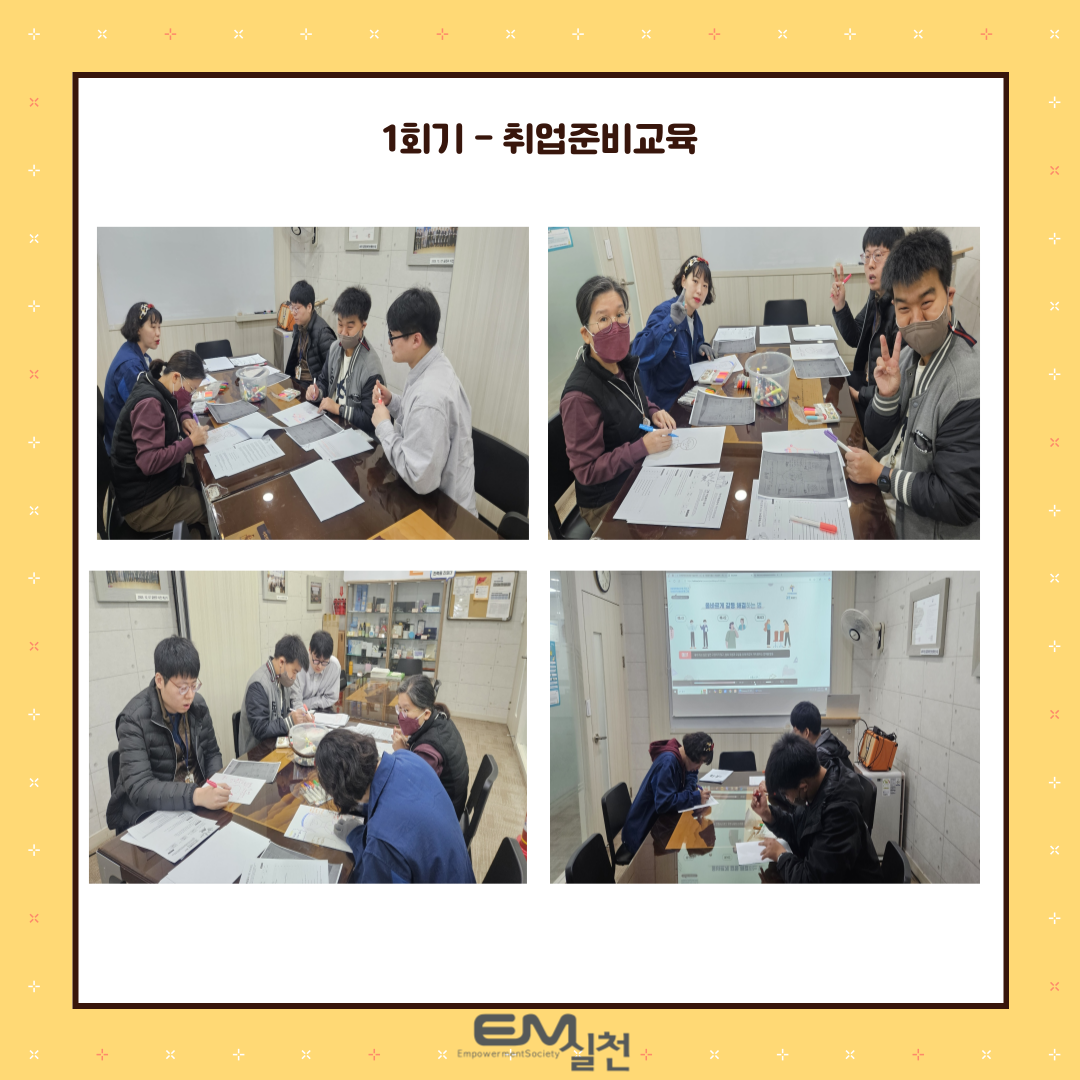 EM실천에서는 훈련장애인이 내부고용을 통해 근로장애인으로 전환(취업)될 수 있도록 취업준비교육을 진행하였습니다!