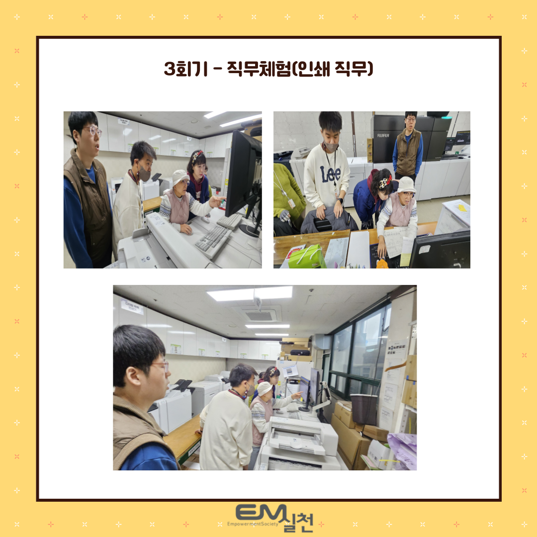 직업탐색 및 EM실천의 다양한 직무체험(인쇄, 현수막)을 통해 취업에 필요한 기술을 익히고 자신감을 향상할 수 있는 시간을 가졌습니다~